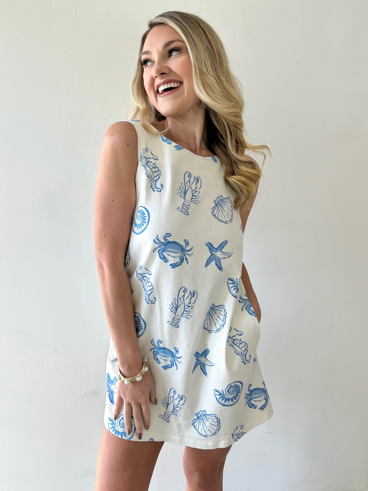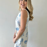 Slip into effortless coastal charm with this white denim dress adorned with delicate blue shell details. The crisp denim fabric offers durability and timeless style, while the whimsical shell embellishments add a playful, beachy touch perfect for casual outings or seaside getaways. Versatile enough to dress up or down, this piece brings a fresh, breezy vibe to any wardrobe. An ideal choice for those who love ocean-inspired fashion with a hint of whimsy.
