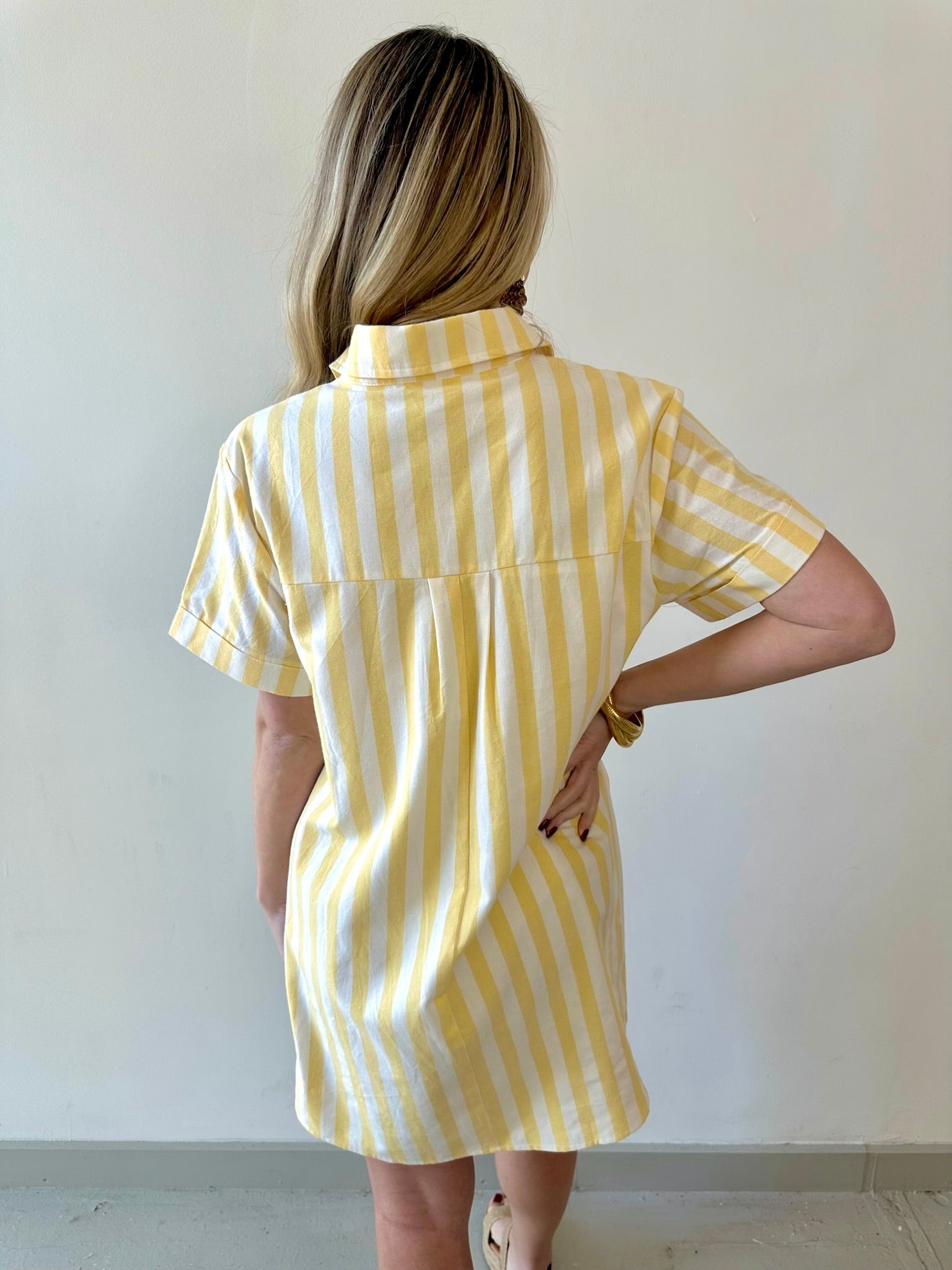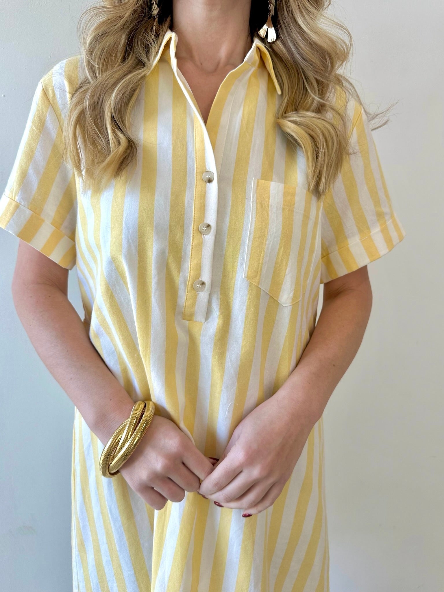 Slip into effortless style that makes you feel instantly put-together and confident. This striped easy shirt dress in cheerful lemon tones combines comfort with timeless appeal, perfect for casual days when you want to look polished without the fuss. The relaxed fit and classic stripes work beautifully for everything from weekend errands to laid-back brunches. Versatile, flattering, and oh-so-easy to wear—your new go-to piece awaits.