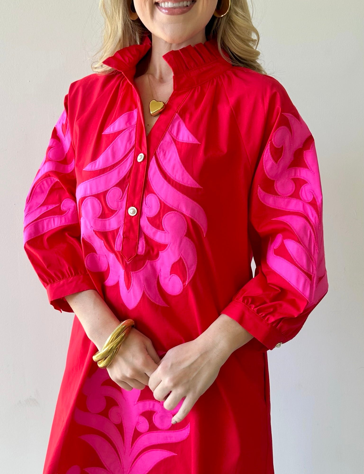 Pink & Orange Trim Shift Dress
