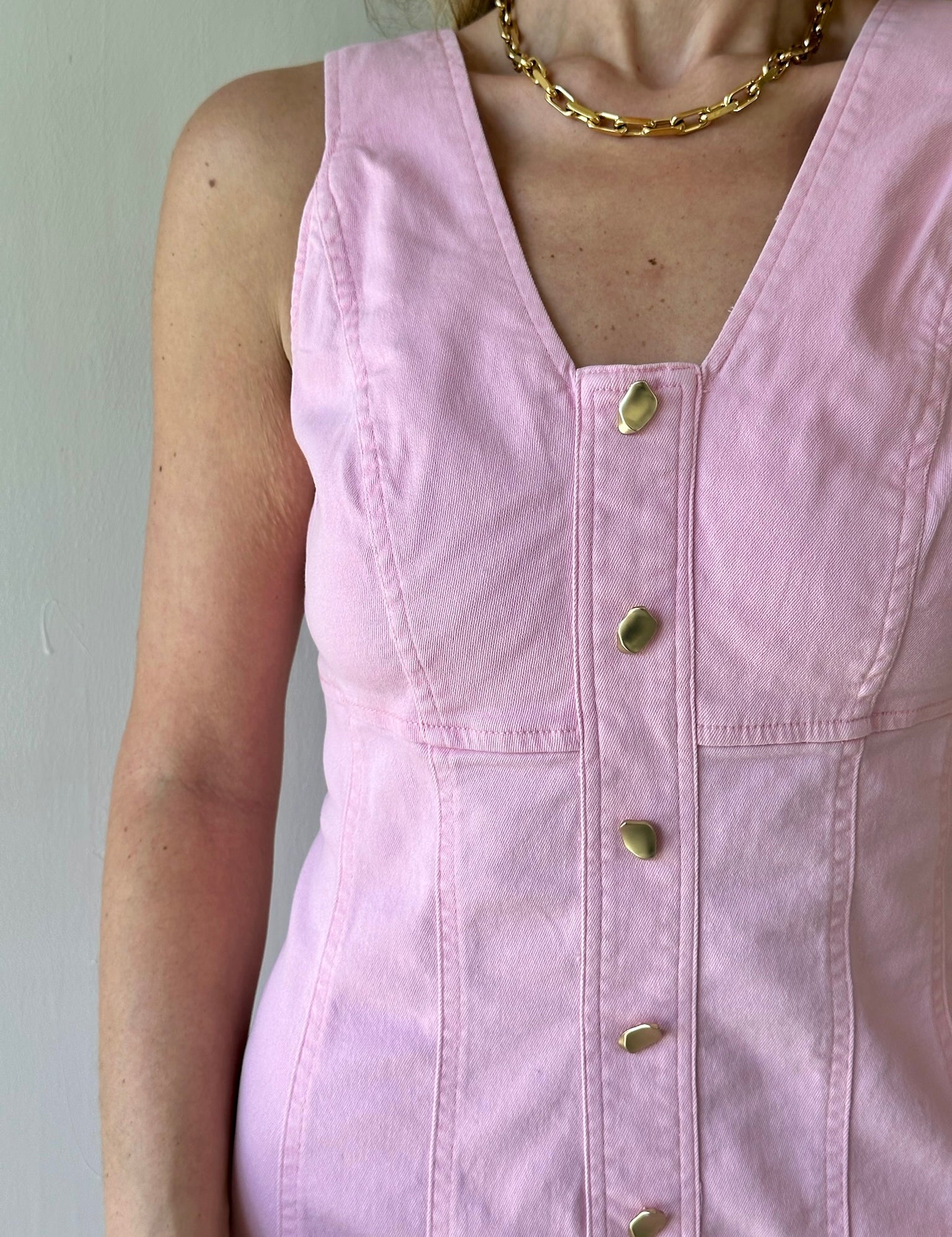 Pink Denim Print Sleeveless Dress