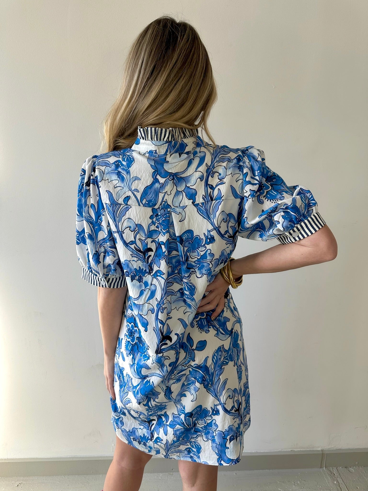 Royal & White Floral Print Dress