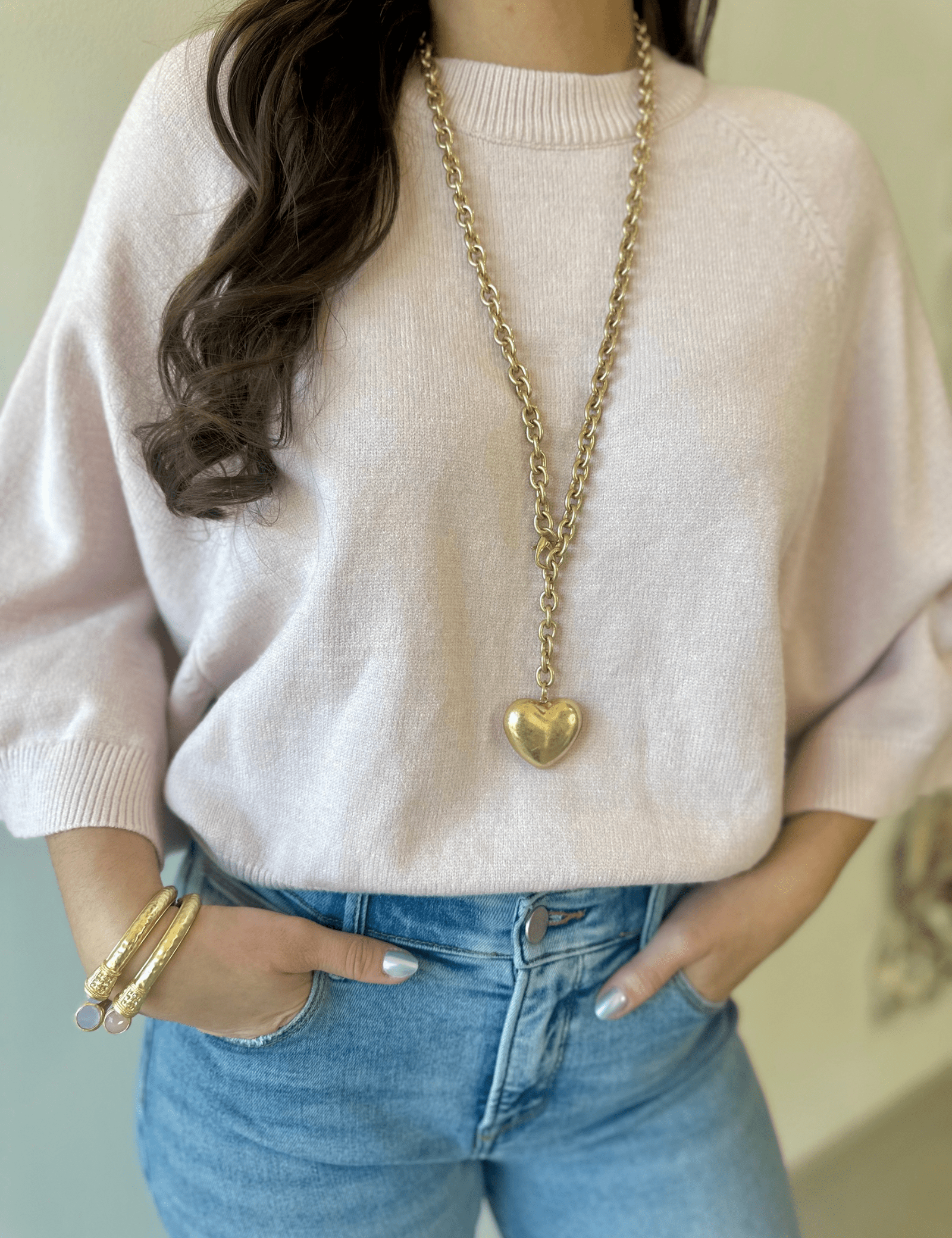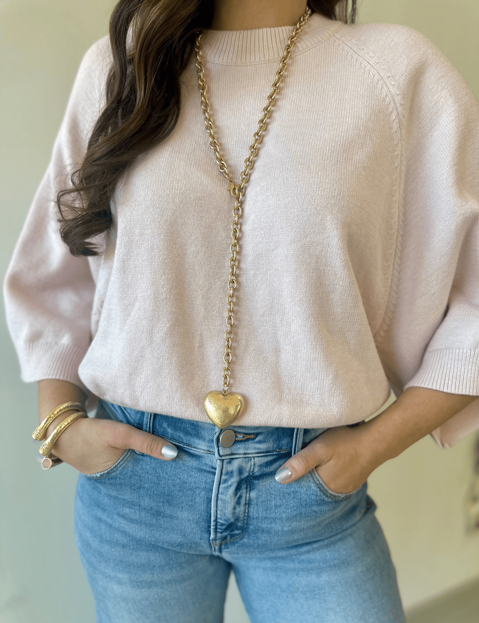 Elevate your accessory game with this beloved vintage puffy heart necklace—a timeless piece that's been flying off our shelves! Rock it long and flowing for an effortless vibe, or wrap it twice for a chic, layered look that's totally you. Crafted in warm worn gold, this beauty strikes the perfect balance between nostalgic charm and modern style.