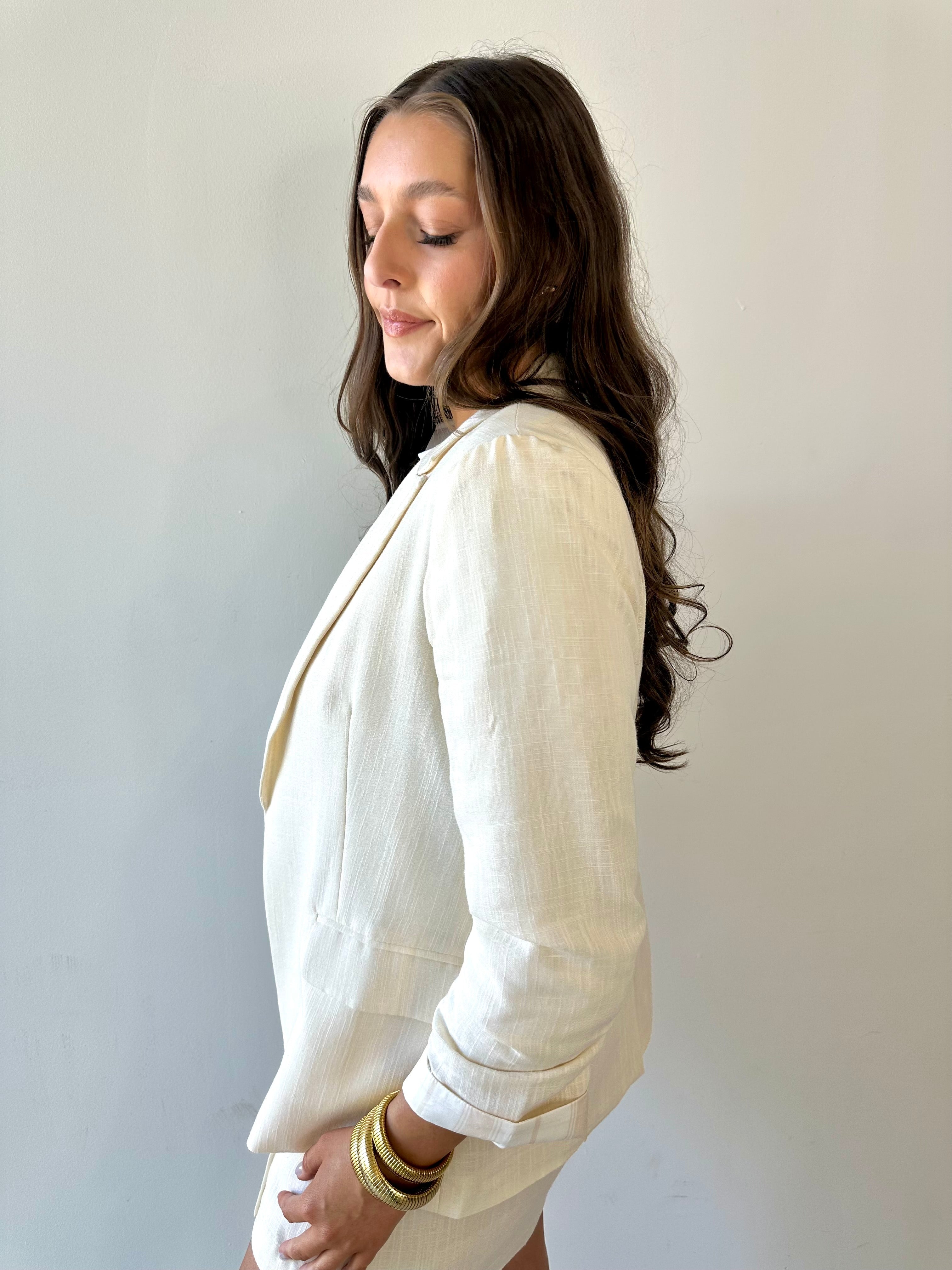 Discover the power of a piece that makes you feel ready to take on the world—this Cinched Sleeve Blazer is your secret weapon for effortless confidence. Wear it solo for a sharp, tailored look, or pair it with matching shorts to create a coordinated set that feels intentional and put-together. The signature cinched sleeves add a modern touch that flatters and delights, while the versatile design transitions from boardroom to brunch with ease. A wardrobe essential that celebrates your style, however you choose to wear it.