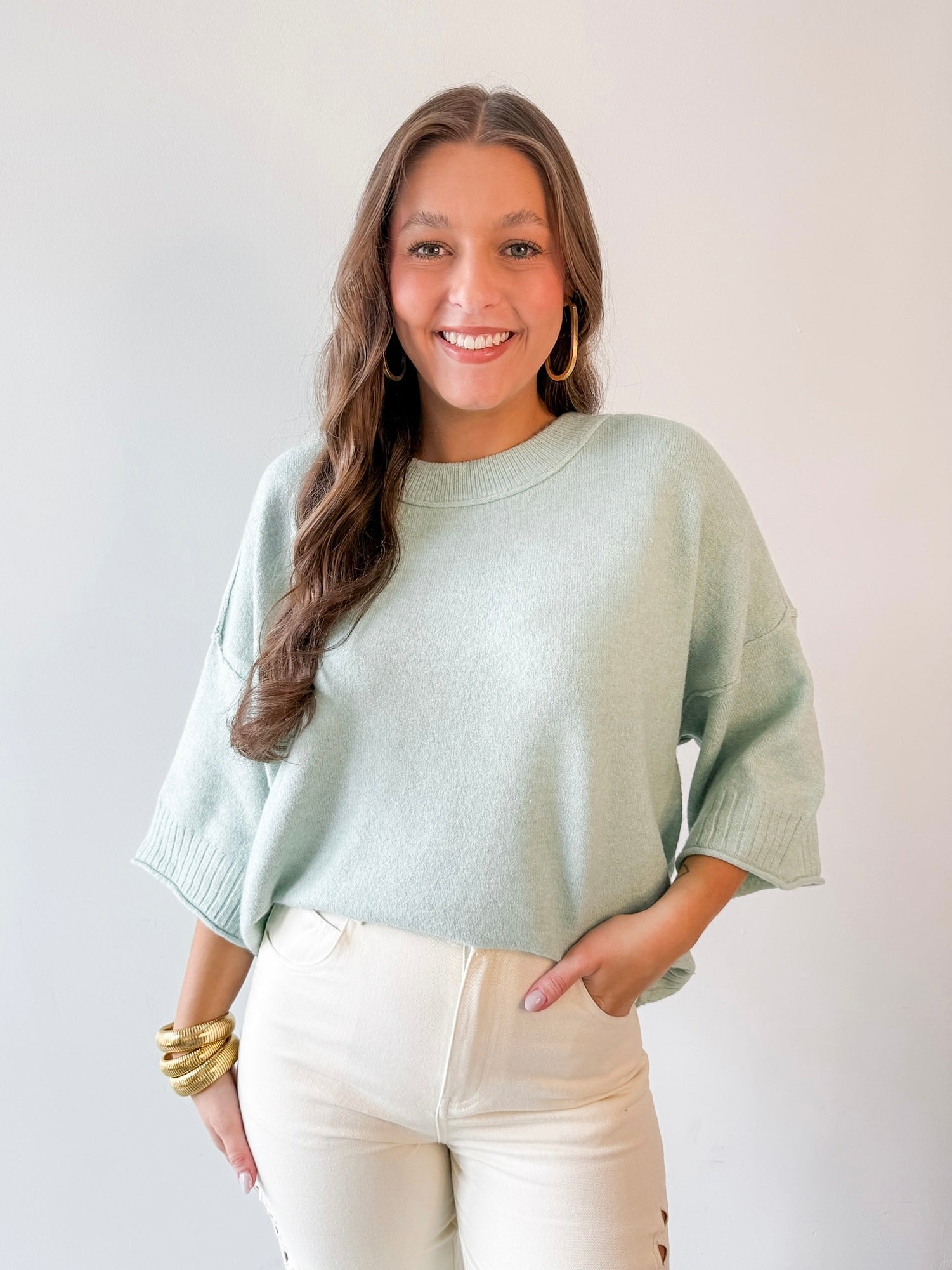 Crew Neck Oversized Sweater - Sage