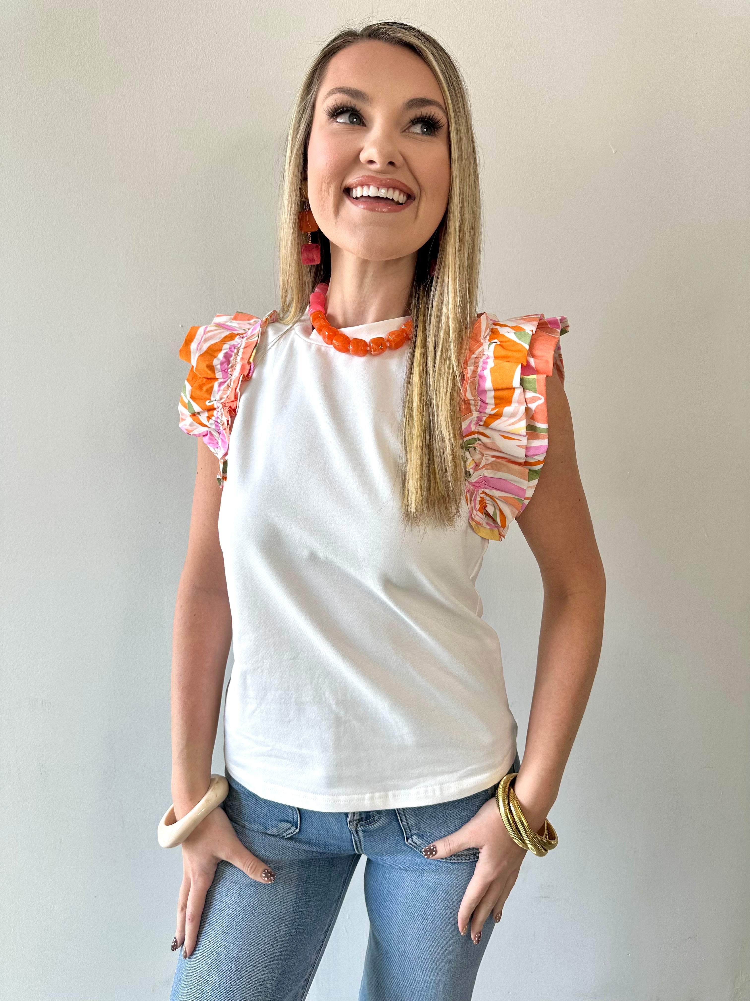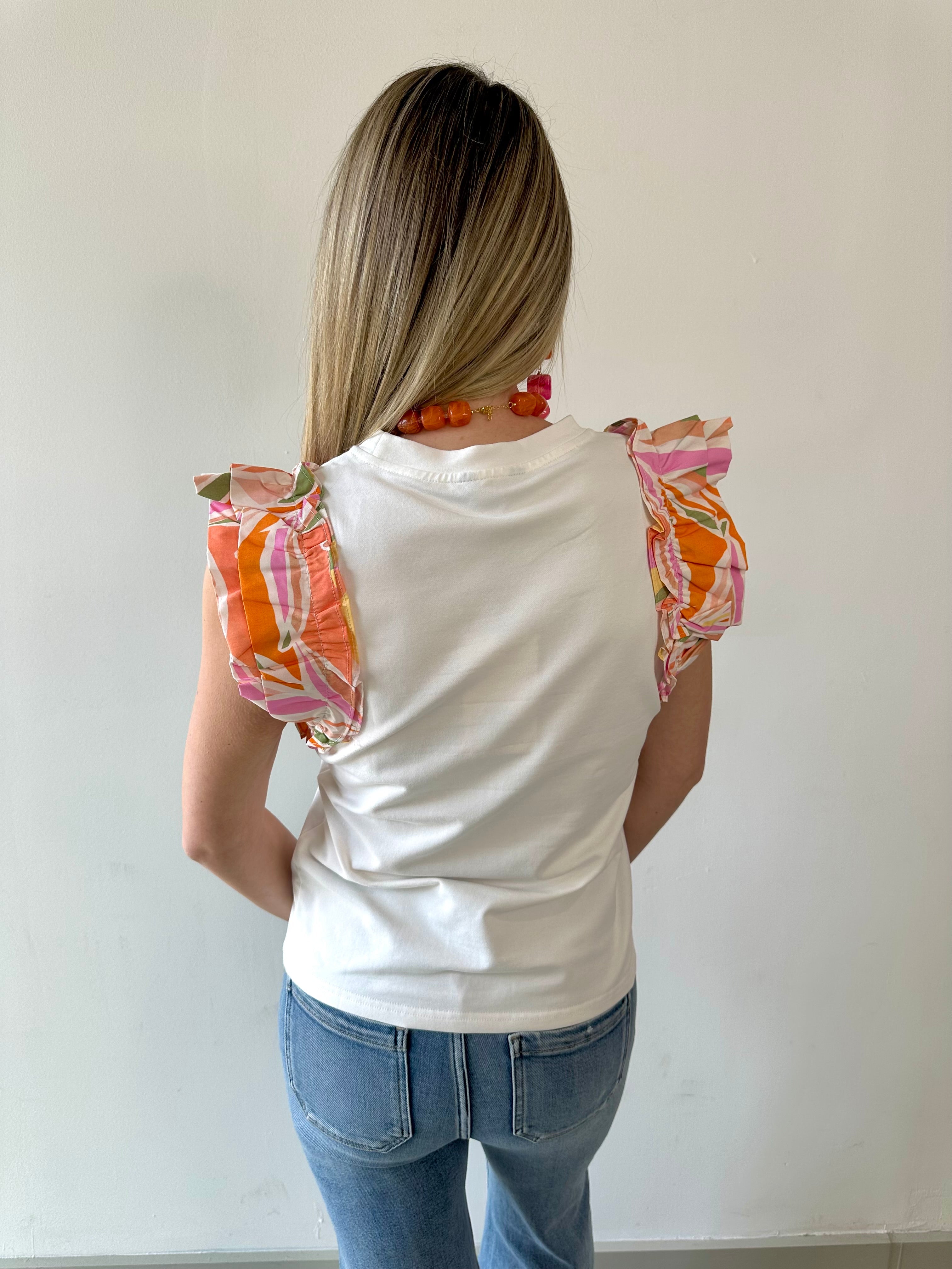 Slip into effortless warmth and playful style with this charming knit top. The delicate ruffle sleeves add a touch of feminine flair, while the tropical-inspired design brings vacation vibes to your everyday wardrobe. Crafted for comfort and versatility, it pairs beautifully with jeans, skirts, or layered pieces for a look that feels both put-together and relaxed.