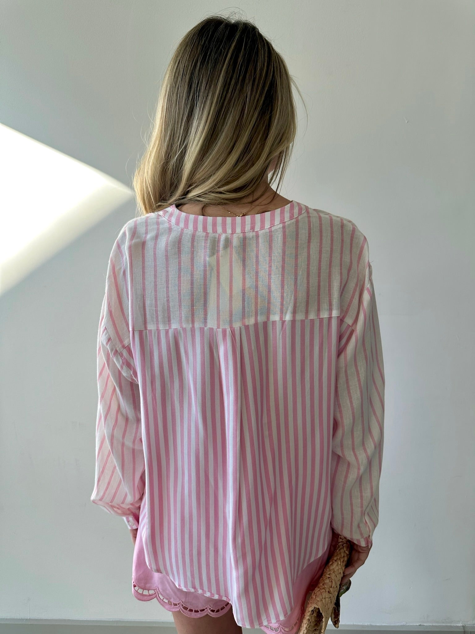 Add a playful touch to your wardrobe with the Stripe Mix Top with Twist. This adorable top combines chic stripes with a fun twist detail, offering a stylish look that keeps you feeling fresh and comfy all day long. Perfect for both casual outings and dressier occasions!