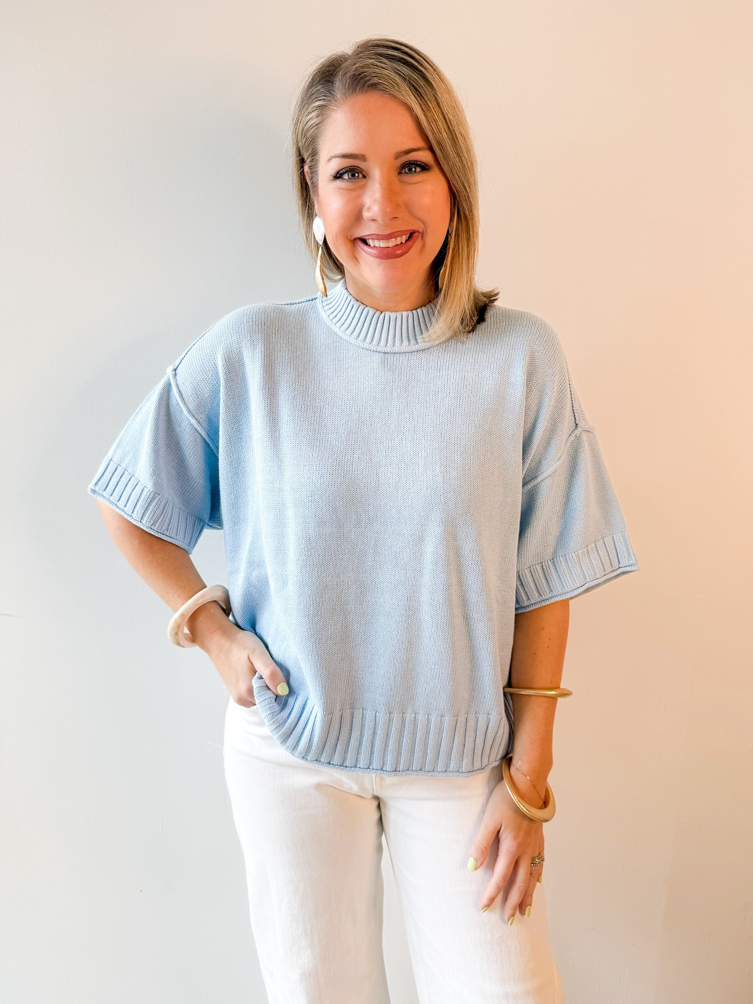 Wrap yourself in the comfort of effortless style with this oversized crew neck sweater in a serene dream blue. The relaxed short sleeves and generous fit create a laid-back silhouette perfect for layering or wearing solo. Crafted for everyday wear, this piece transitions seamlessly from casual weekends to cozy evenings. A versatile wardrobe essential that feels as good as it looks.