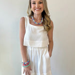Discover the joy of lightweight simplicity with this ivory linen cropped top that makes getting dressed feel effortless. Crafted from breathable linen, it's designed to keep you cool and comfortable all season long. The cropped cut flatters your frame while offering endless styling possibilities—layer it over basics or wear it solo for an instantly polished look. A wardrobe staple that brings both ease and charm to your everyday rotation.
