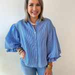 Elevate your everyday style with a piece that brings joy and confidence to every wear—our Pinstripe Voluminous Bubble Top combines playful volume with timeless pinstripe detailing for an effortlessly chic look. The relaxed bubble silhouette creates flattering movement while the classic stripe pattern keeps things sophisticated. Perfect for layering or wearing solo, this versatile top transitions seamlessly from casual outings to weekend adventures. A wardrobe essential that feels as good as it looks.