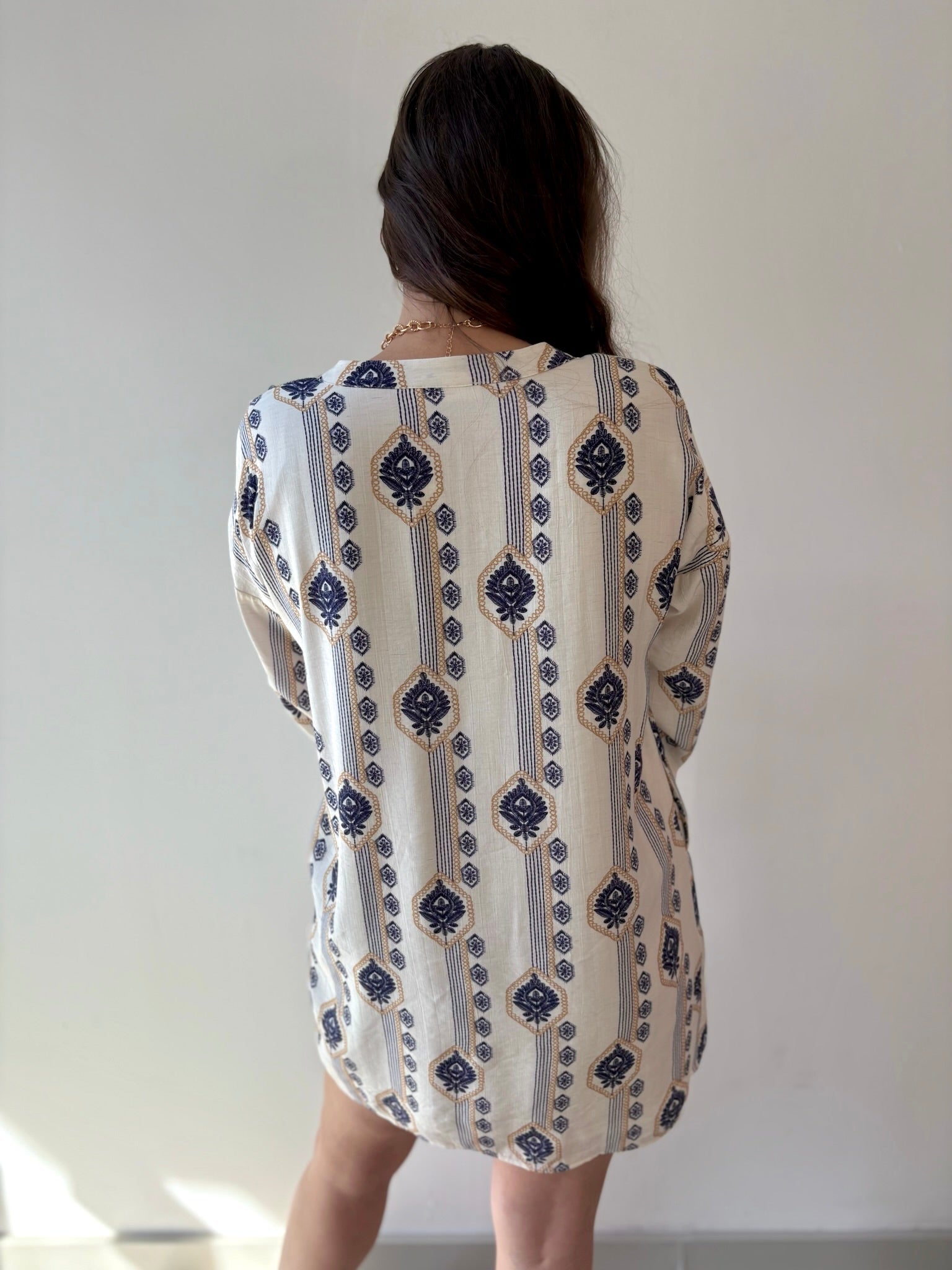 Feel the freedom of fashion that doesn't demand anything from you—this Split Neck Kaftan is pure, uncompromising comfort. Draped in soothing off-white and navy tones, it's the kind of piece that makes you smile the moment you put it on. The gently split neckline adds just enough interest to keep things interesting, while the flowing silhouette lets you move through your day with ease. Whether you're lounging at home or stepping out, this kaftan is your new best friend.