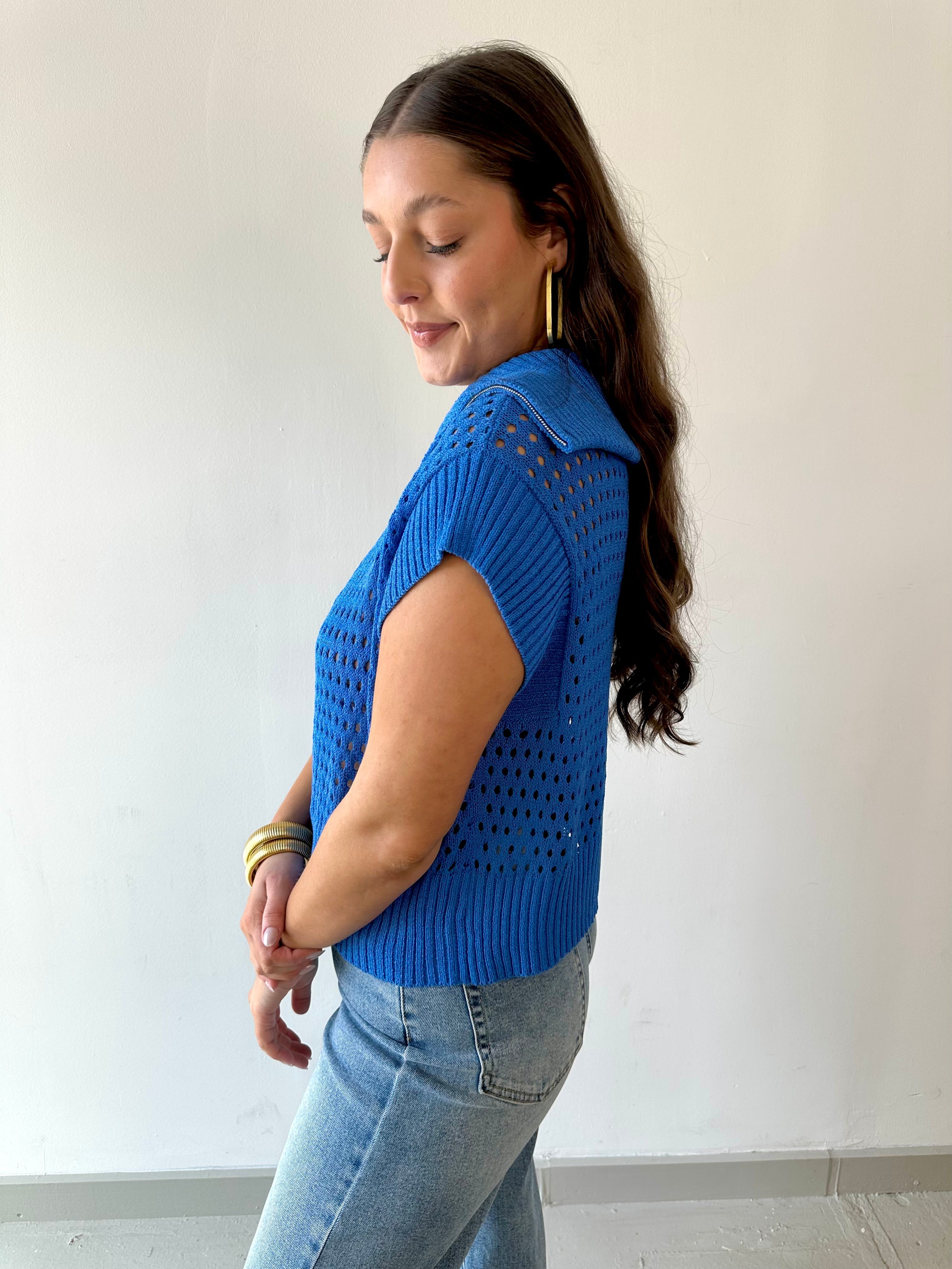 Fishnet Zip Relaxed Sweater - Royal Blue