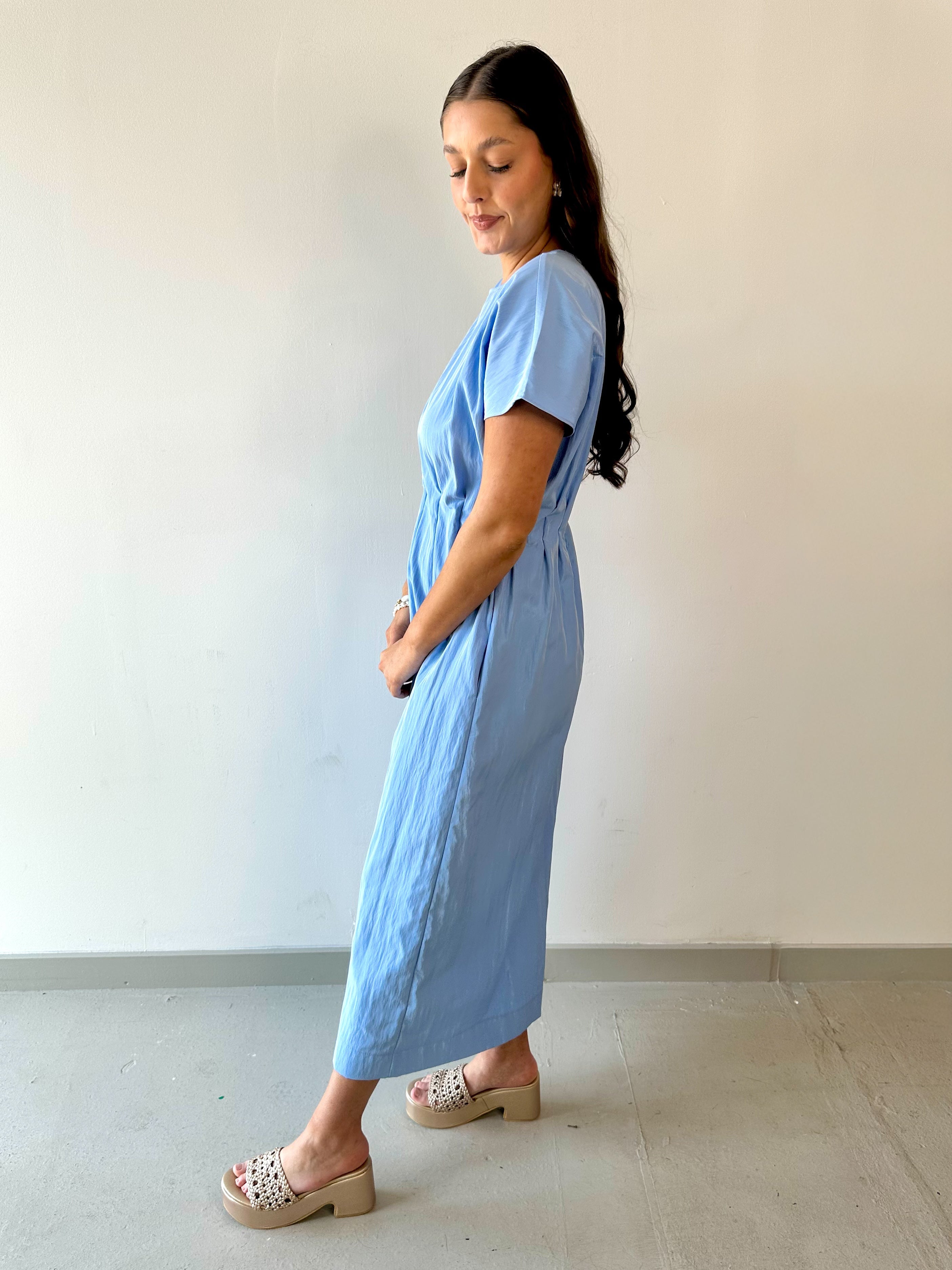 Discover the comfort of wearing something that makes you feel genuinely confident and beautiful—this round neck midi dress in blue is your new wardrobe essential. The soft, rounded neckline pairs perfectly with the graceful midi length, creating a look that's both approachable and refined. Layer it with a cardigan for cooler days or wear it solo when the weather warms; this sweet, versatile piece adapts to your lifestyle while keeping you looking effortlessly chic.