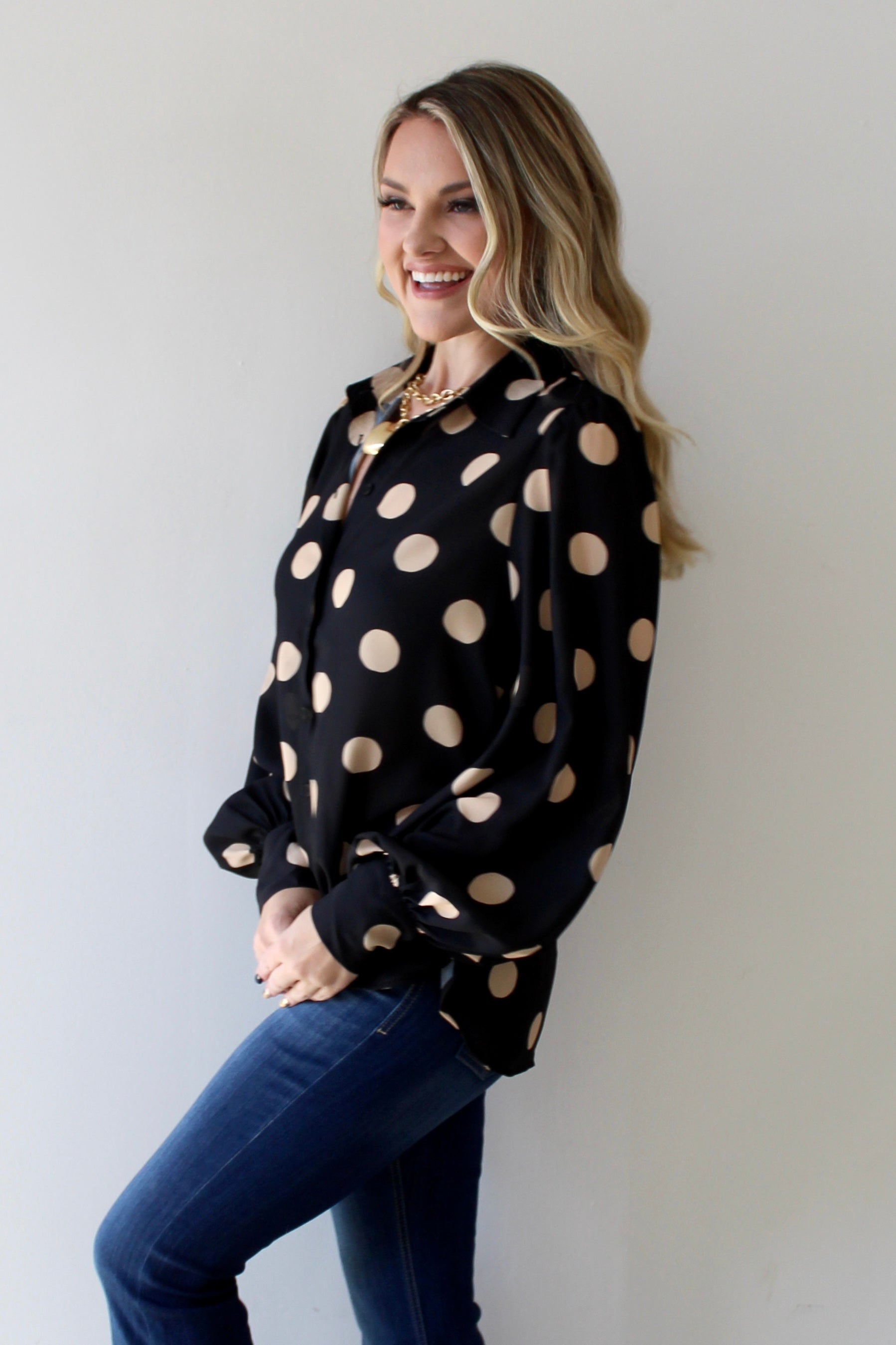 Bring a playful spark to your everyday wardrobe with this charming polka dot blouse that instantly lifts your mood. The classic dot pattern pairs effortlessly with jeans, skirts, or trousers, making it a versatile staple you'll reach for again and again. Perfect for casual outings or dressing up with the right accessories, this blouse combines timeless style with modern comfort. Whether you're heading to brunch or the office, it's the kind of piece that makes you smile every time you put it on.