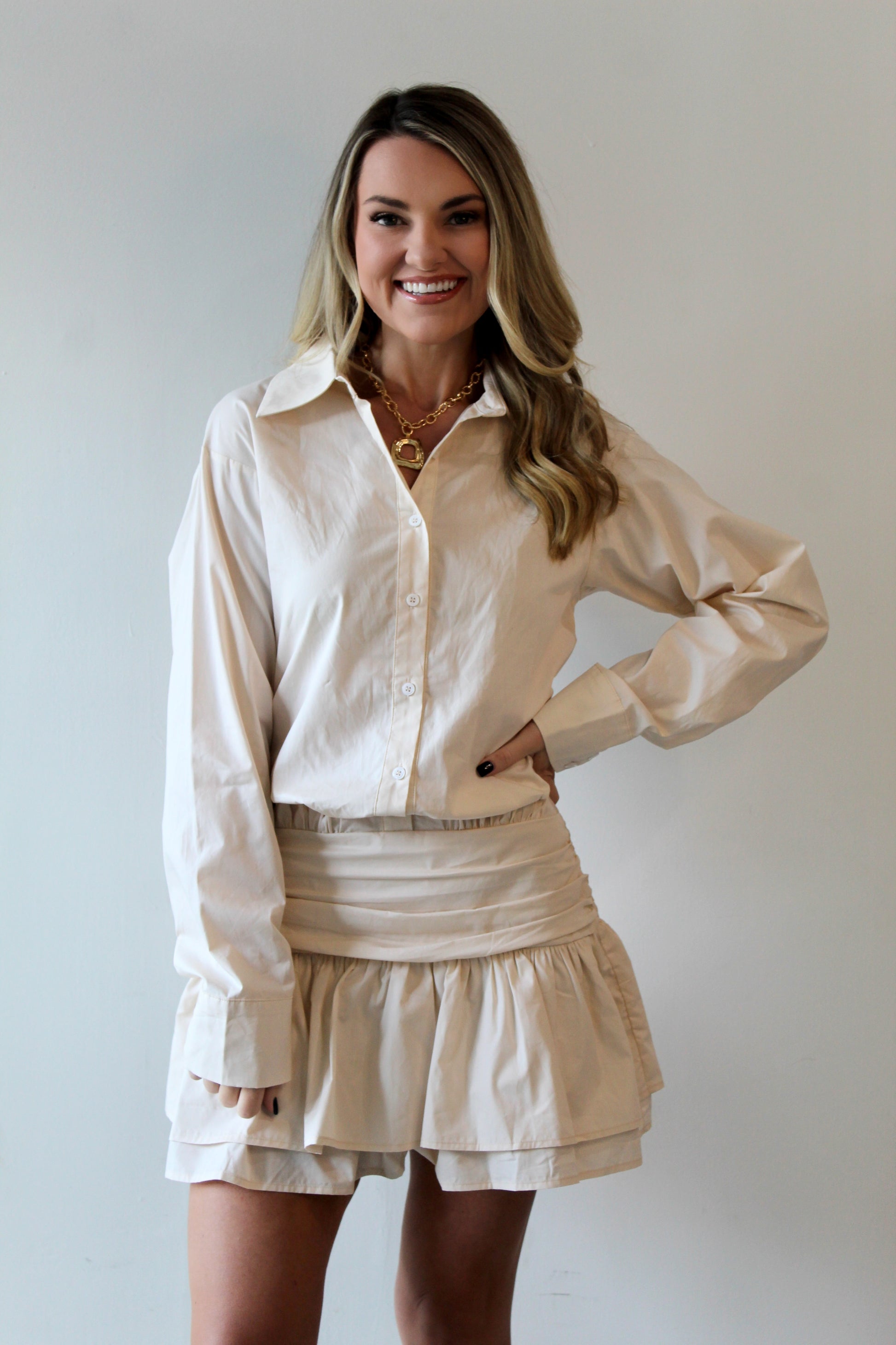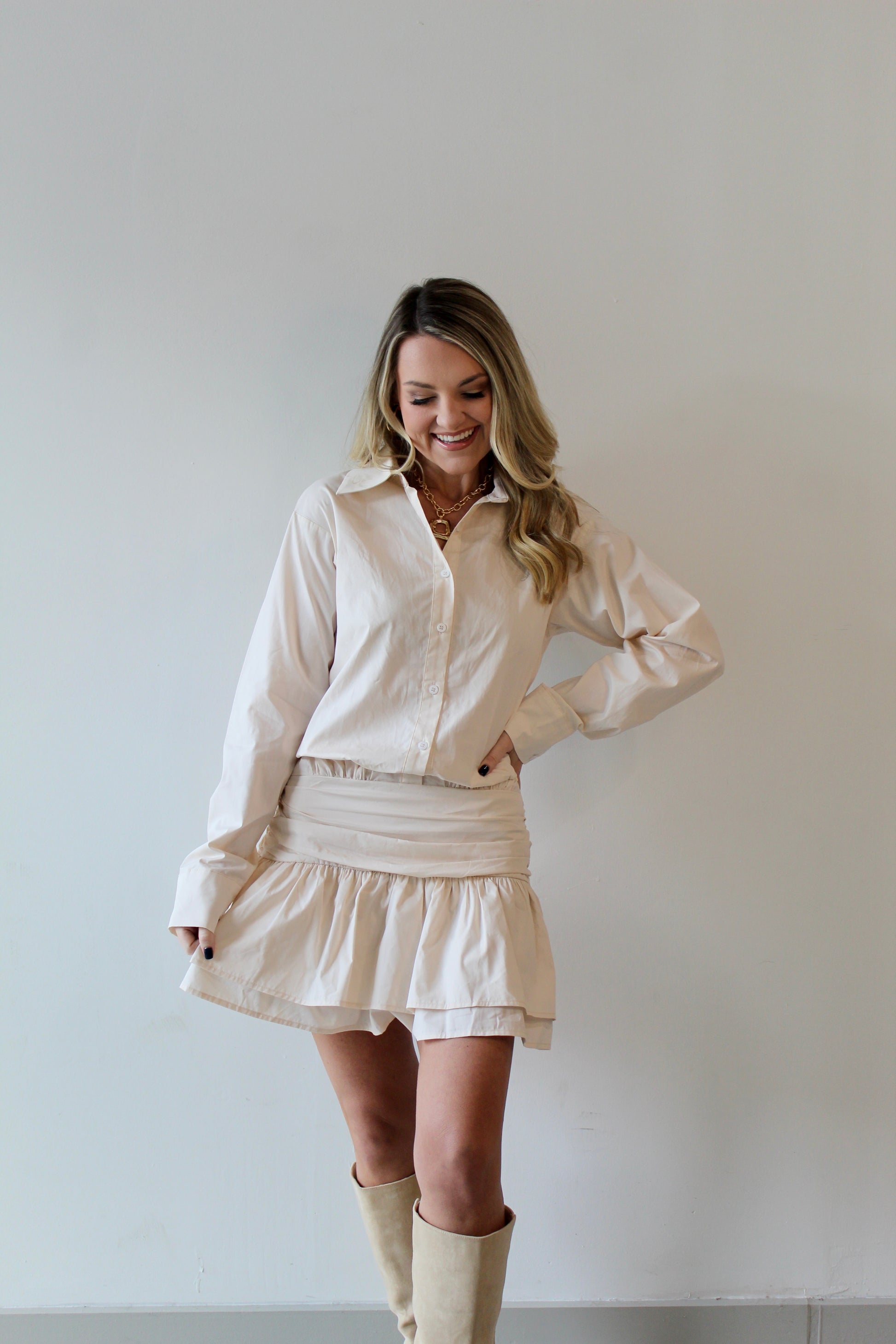 Slip into effortless elegance with this charming drop waist mini shirt dress—the perfect piece for those days when you want to feel put-together without trying too hard. The relaxed silhouette and playful proportions create a flattering, modern look that transitions seamlessly from casual outings to weekend adventures. Versatile enough to dress up or down, this wardrobe essential pairs beautifully with sneakers, boots, or your favorite accessories for endless styling possibilities.