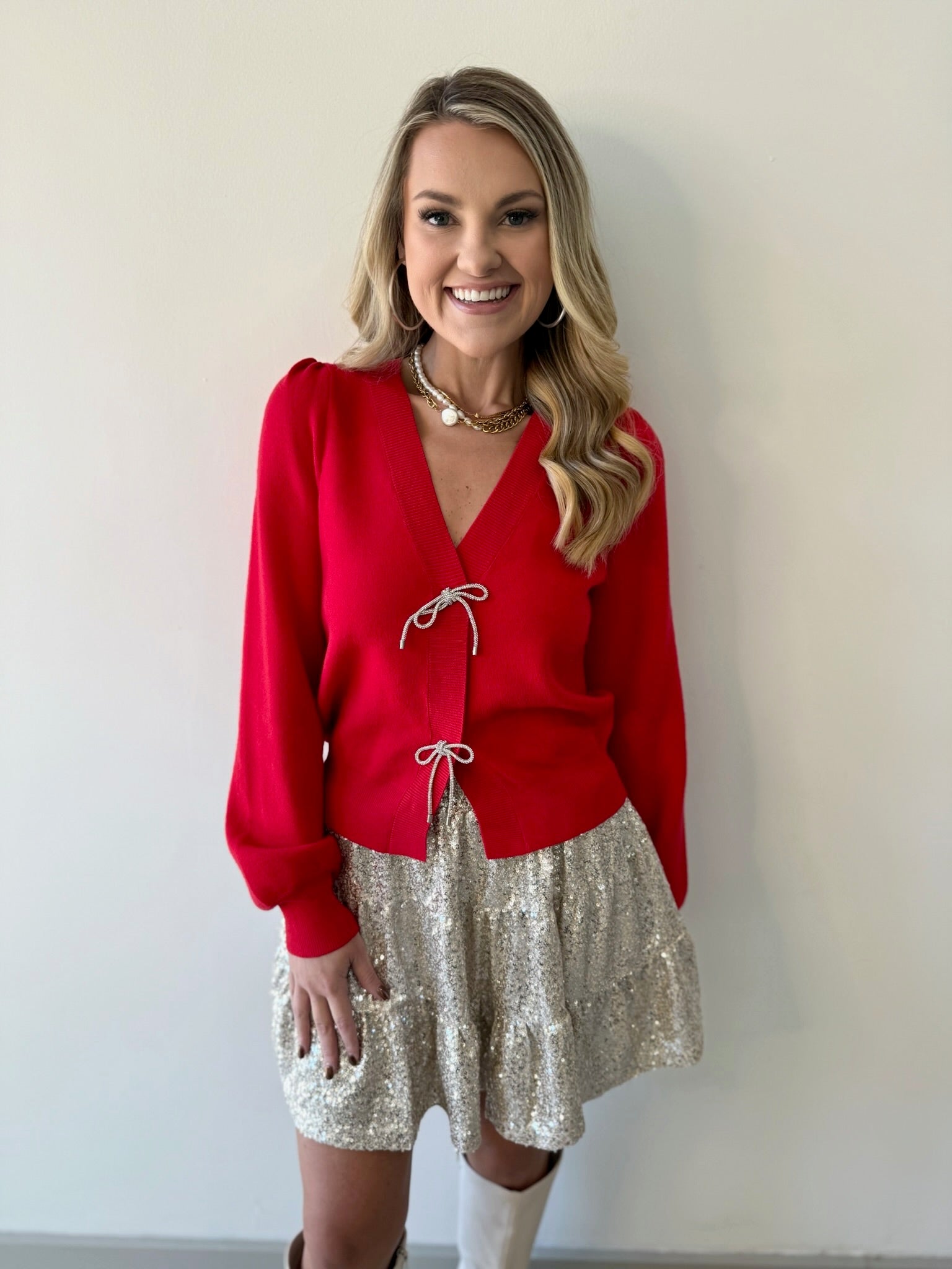 Weslyn is a size 0-2 and wearing a small.
