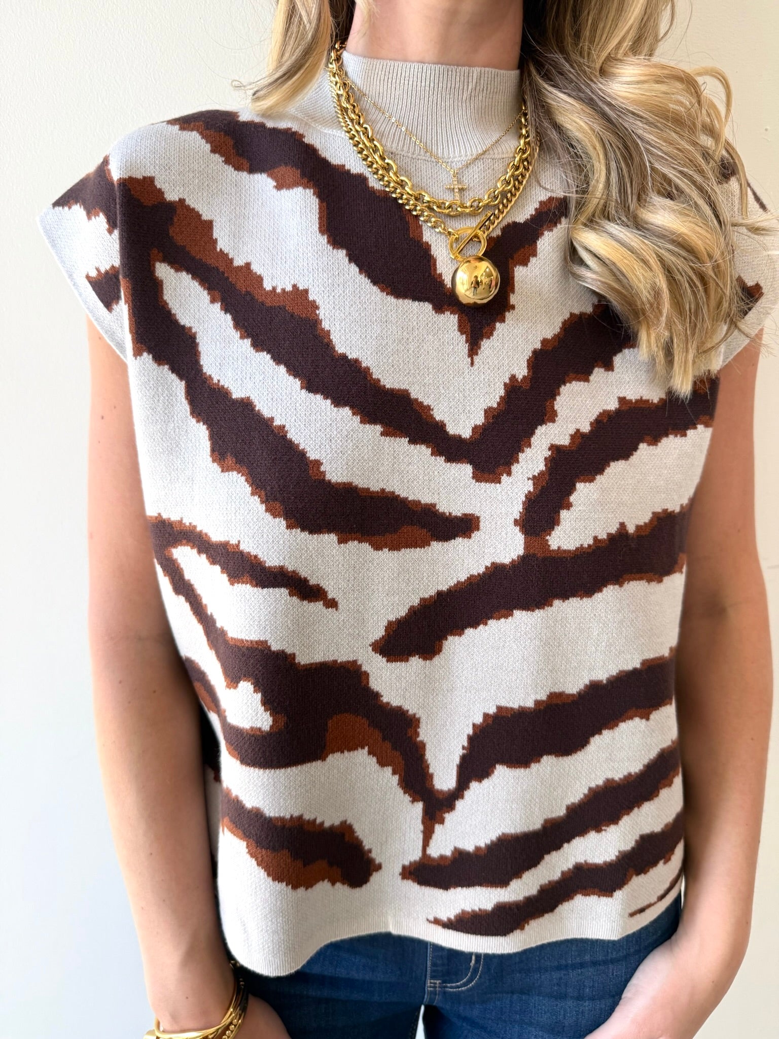 Stay cozy and stylish in this cute Animal Print Mock Neck Sweater. Featuring a relaxed silhouette and short sleeves, this medium-weight knit top is perfect for layering or wearing on its own. The soft, non-sheer fabric keeps you comfortable, while the playful animal pattern adds a fun touch to your look. Unlined for breathability, it’s a charming piece that pairs effortlessly with your favorite jeans or skirts.