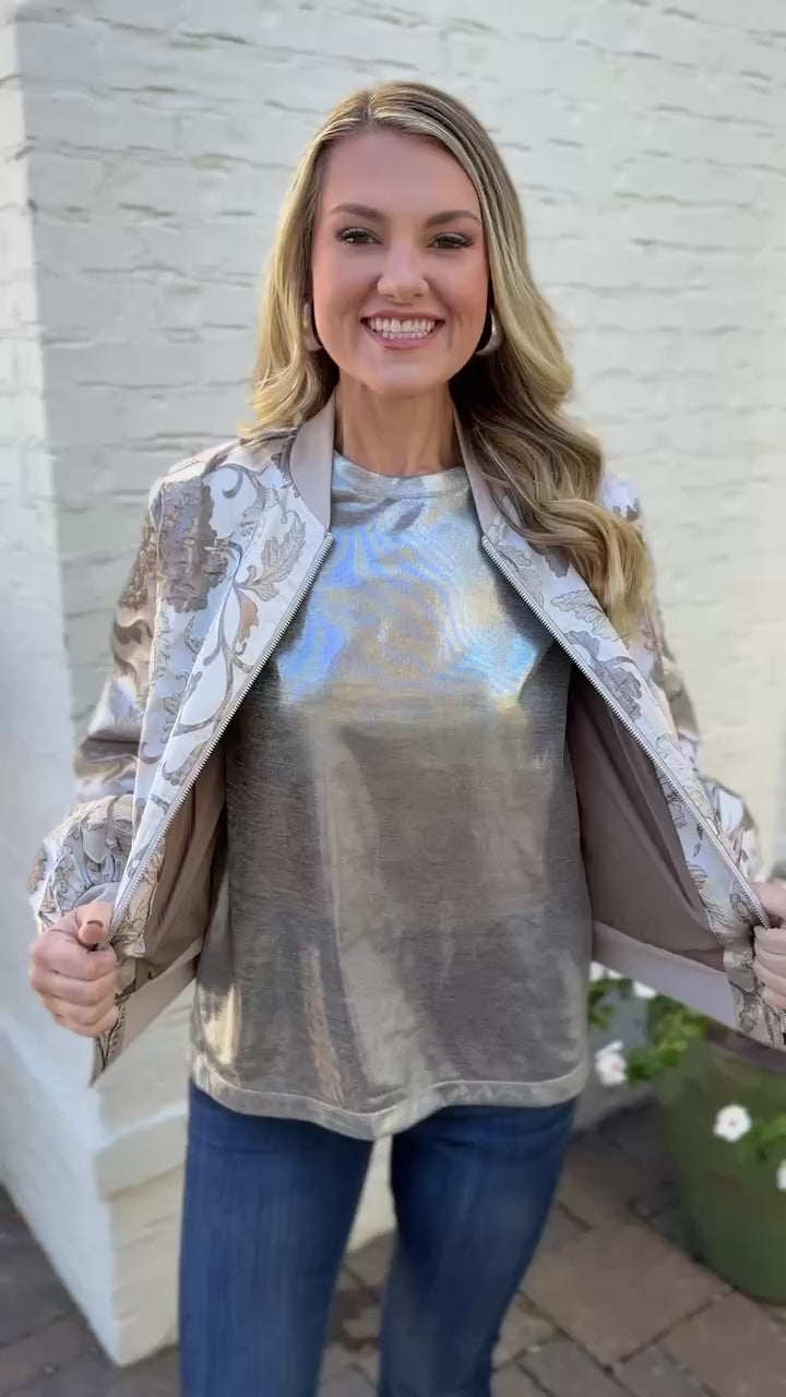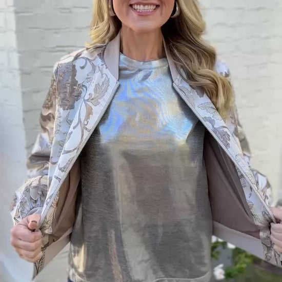 Wrap yourself in effortless elegance with this stunning quilted jacket that transforms everyday moments into something special. The delicate jacquard flower print in silver tones brings a touch of botanical beauty to your wardrobe, while the quilted construction offers both warmth and a refined silhouette. Perfect for layering over your favorite pieces, this jacket combines timeless charm with modern comfort—ideal for anyone who loves adding a dash of sophistication to their style.