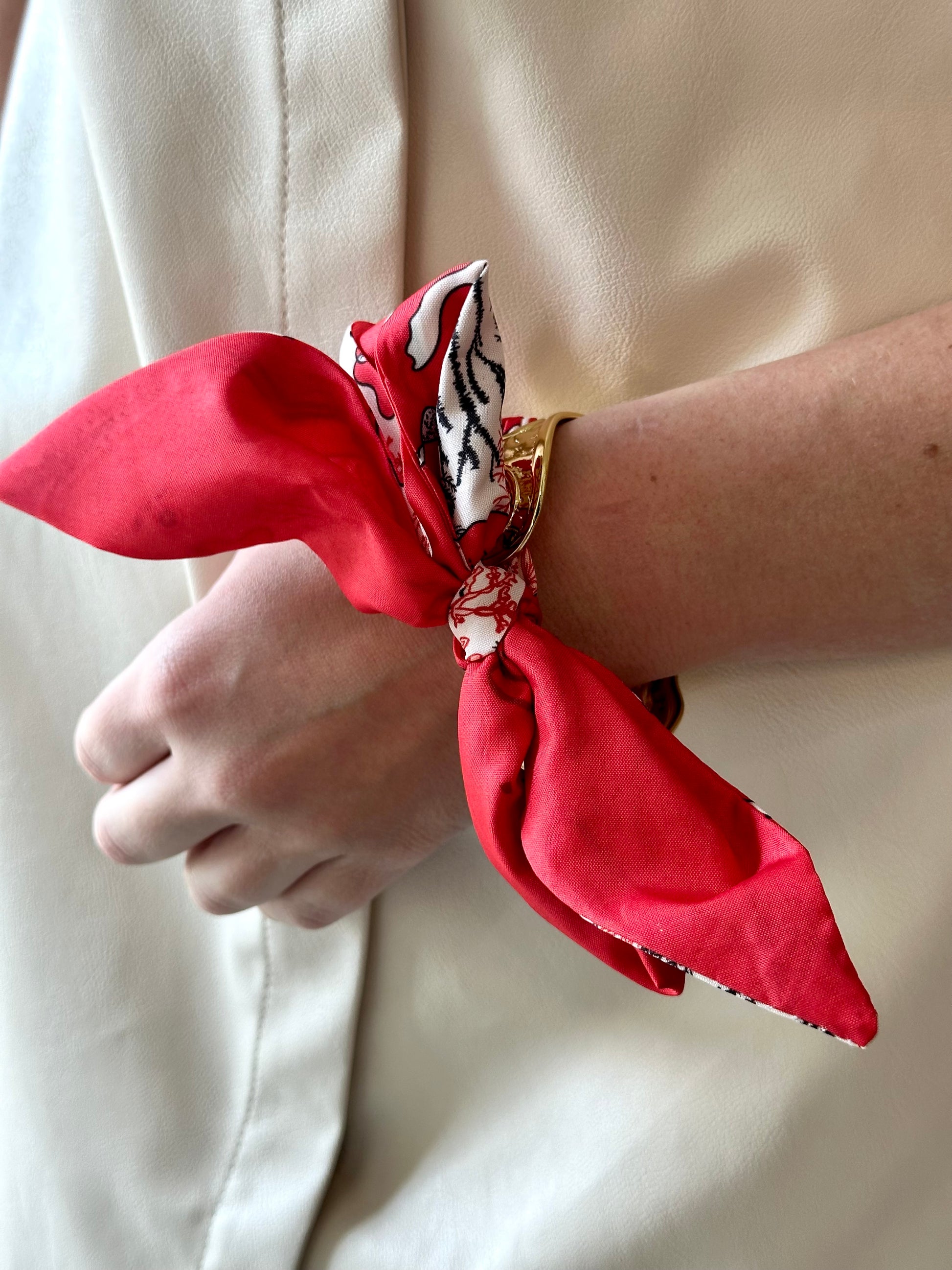 Wrap yourself in luxury and elegance with this stunning 18K gold plated silk scarf cuff bracelet—a piece that transforms any moment into something special. The delicate gold plating catches the light beautifully, while the soft silk scarf design adds a touch of sophistication and comfort to your wrist. Perfect for layering with other bracelets or wearing solo, this versatile accessory complements both casual and dressed-up looks. A timeless addition to any jewelry collection that feels as good as it looks.