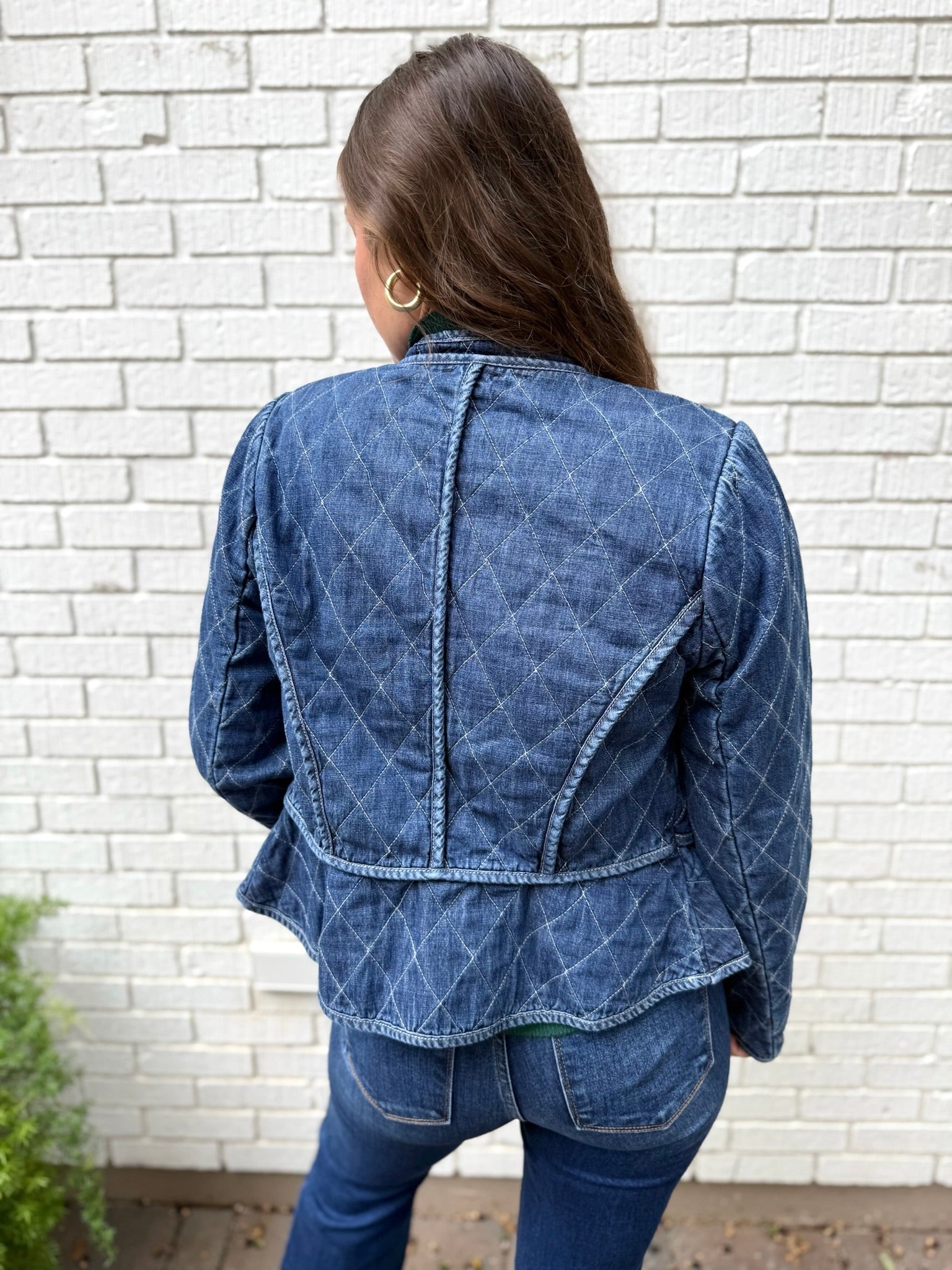 Layer up in style with this adorable quilted zip denim jacket! Featuring a cozy quilted lining that adds warmth without the bulk, this versatile piece transitions seamlessly from season to season. The classic denim exterior pairs perfectly with everything in your wardrobe, while the convenient zip closure makes it effortless to slip on and off. Whether you're heading out for a casual coffee run or a weekend adventure, this jacket delivers both comfort and charm. A timeless staple that's sure to become your go-to favorite!