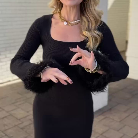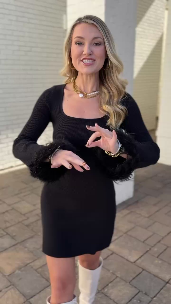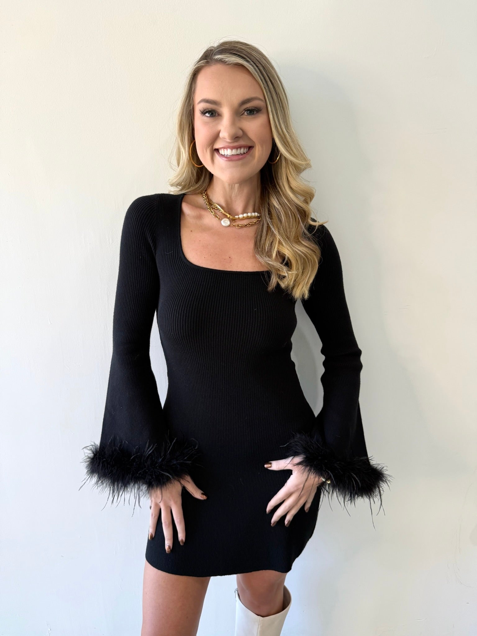 The Annalise Frill Sleeve Dress in black brings a touch of playful elegance to your wardrobe. Featuring delicate frill sleeves, this dress adds a charming, feminine flair while keeping a sleek, classic silhouette. Perfect for both casual outings and special occasions, it pairs effortlessly with your favorite accessories to create a cute and effortlessly stylish look.