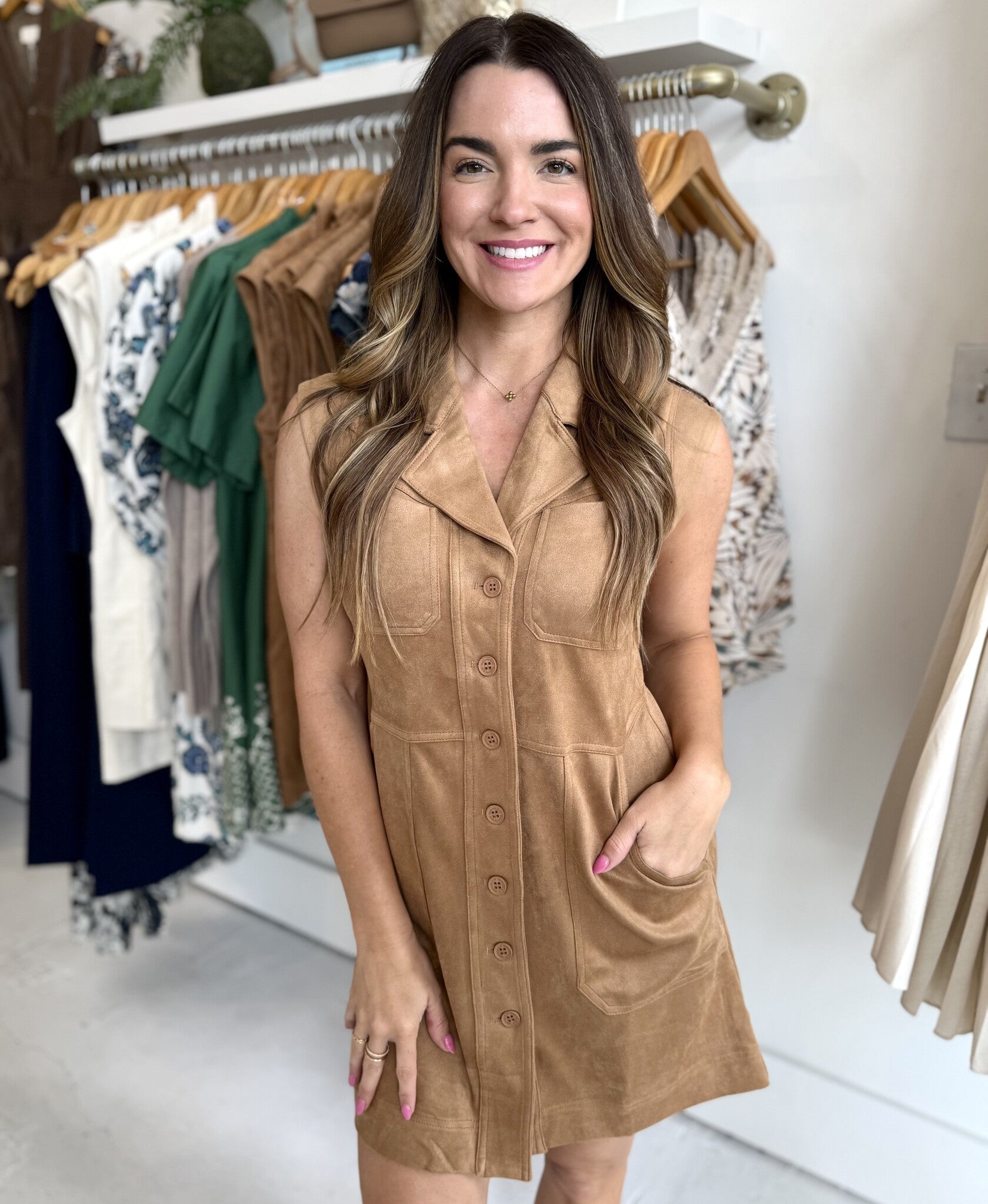 Step out in style with the Caroline Vegan Suede Mini Dress in Camel. This playful, chic piece offers a smooth suede feel without the guilt, perfect for nights out or casual brunches. Its flattering mini length highlights your legs, while the rich navy shade adds a pop of color to your wardrobe. Dress it up or down effortlessly and enjoy comfort with a conscience.