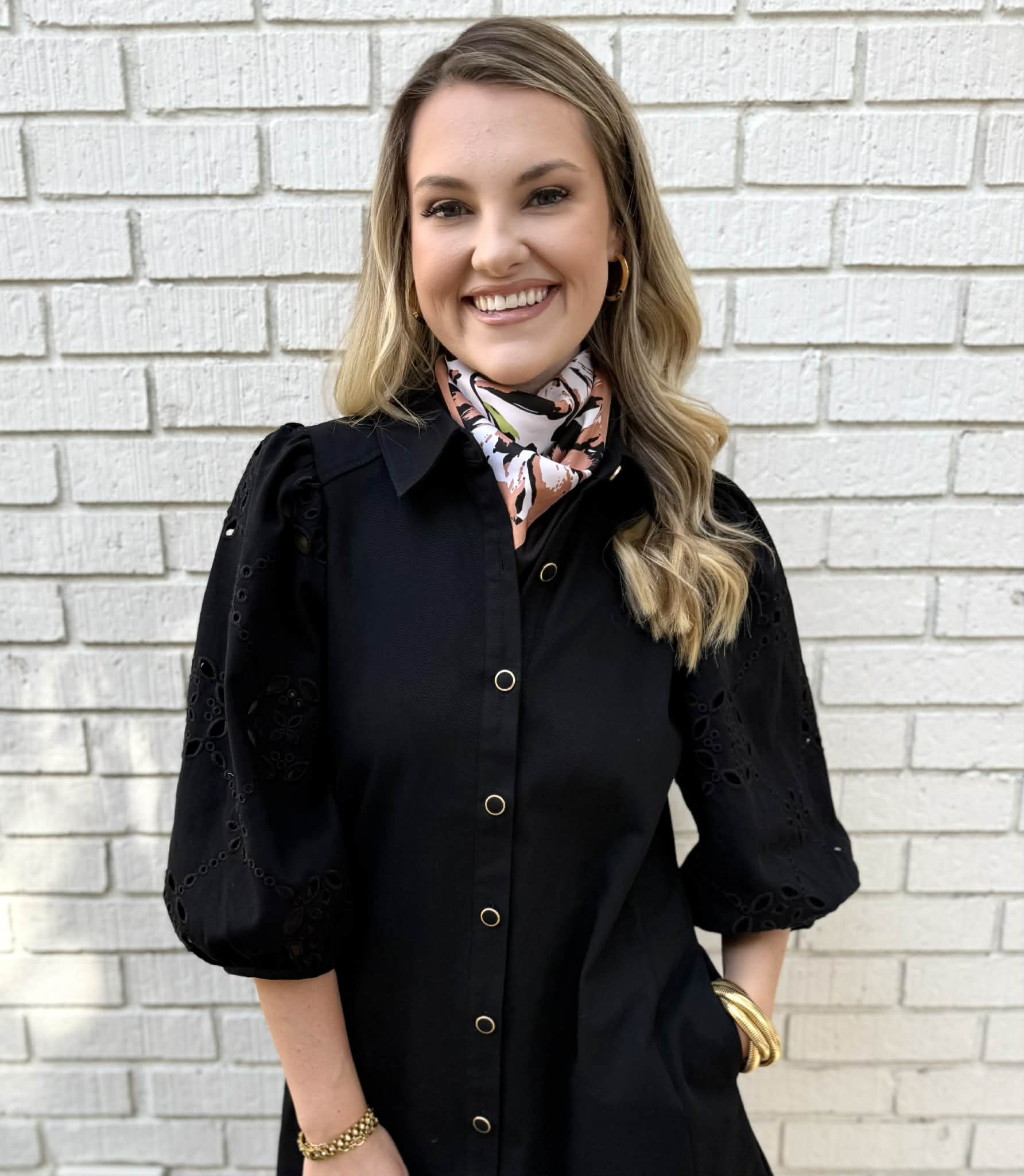 The Clara Scarf is your new go-to accessory for effortless elegance! Crafted from silky polyester, this charming scarf features a sophisticated palette of black and cream with delicate touches of green. The luxurious fabric drapes beautifully around your shoulders, adding a soft, polished finish to any outfit. Perfect for layering over dresses, wrapping around your neck, or styling as a headscarf—this versatile piece brings a touch of understated charm to your everyday look.