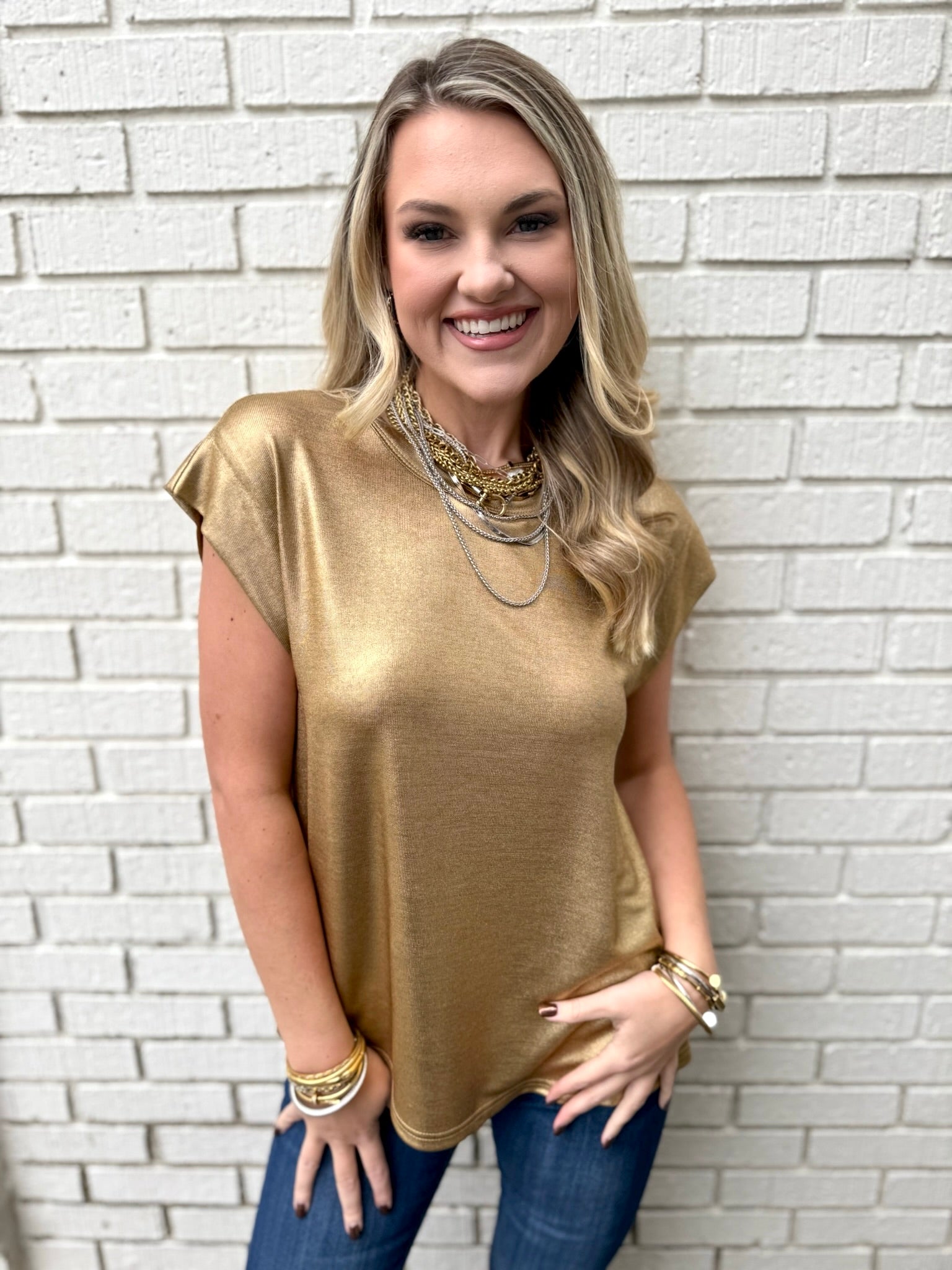 Elevate your everyday style with this adorable gold metallic knit top! The relaxed drop shoulder silhouette creates an effortlessly chic vibe, while the shimmering metallic yarn adds just the right amount of sparkle. Perfect for dressing up a casual outfit or layering over your favorite basics. Soft, comfortable, and totally Instagram-worthy.