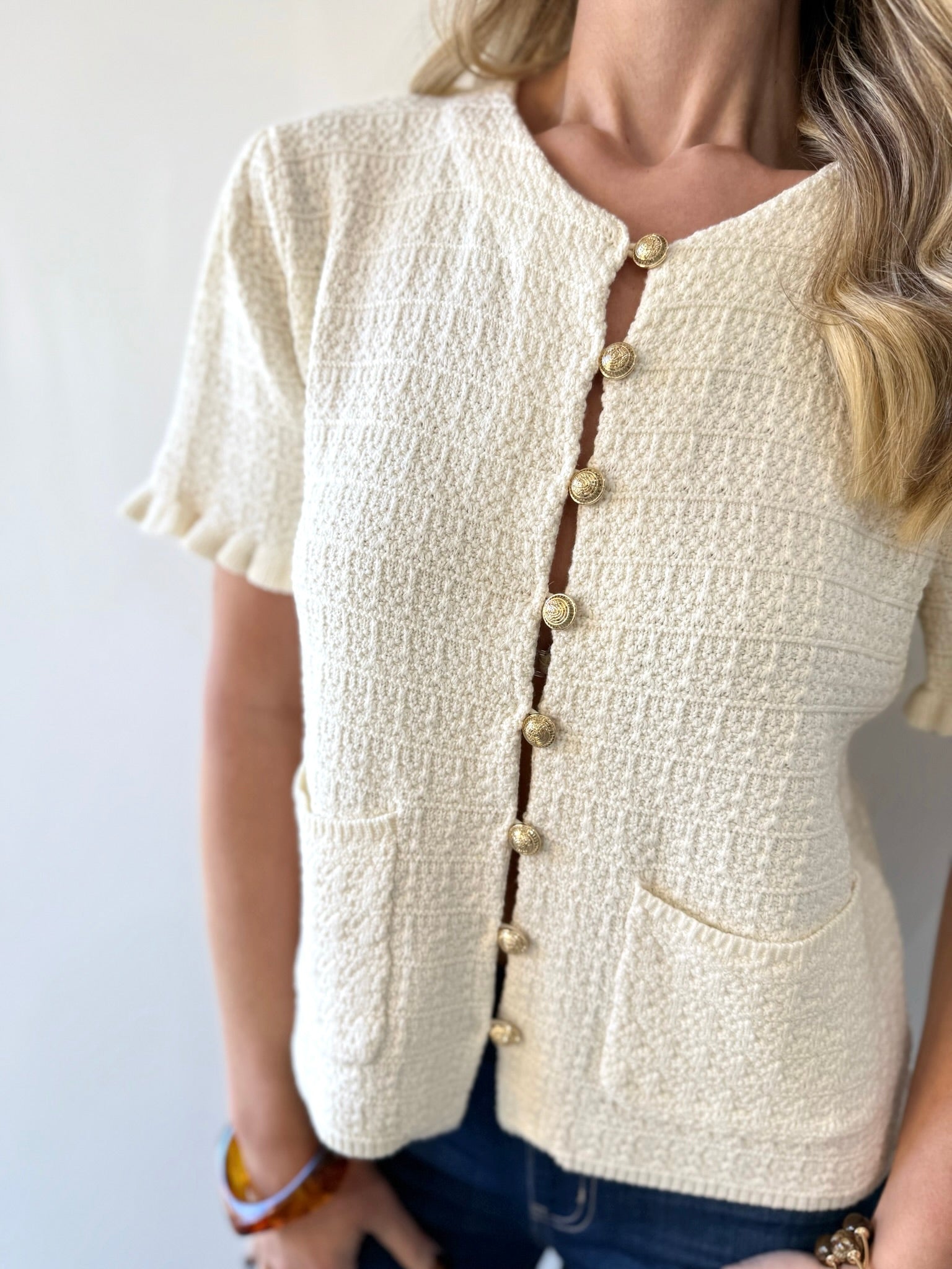 - Gold button detail