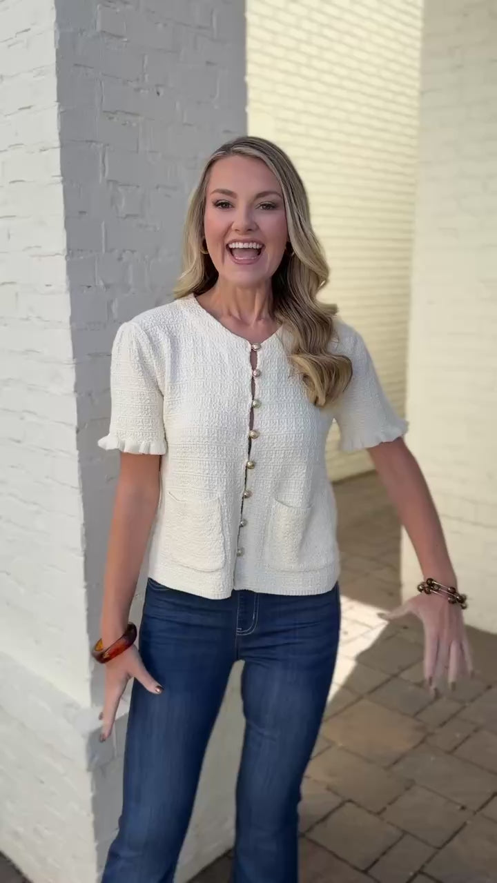 Stay cozy and charming in the Remi Ruffled Sweater Top. Soft and comfy, this sweater features delicate ruffles that add a playful, feminine touch to your everyday look. Perfect for layering or wearing on its own, it brings a sweet and stylish vibe to any outfit.