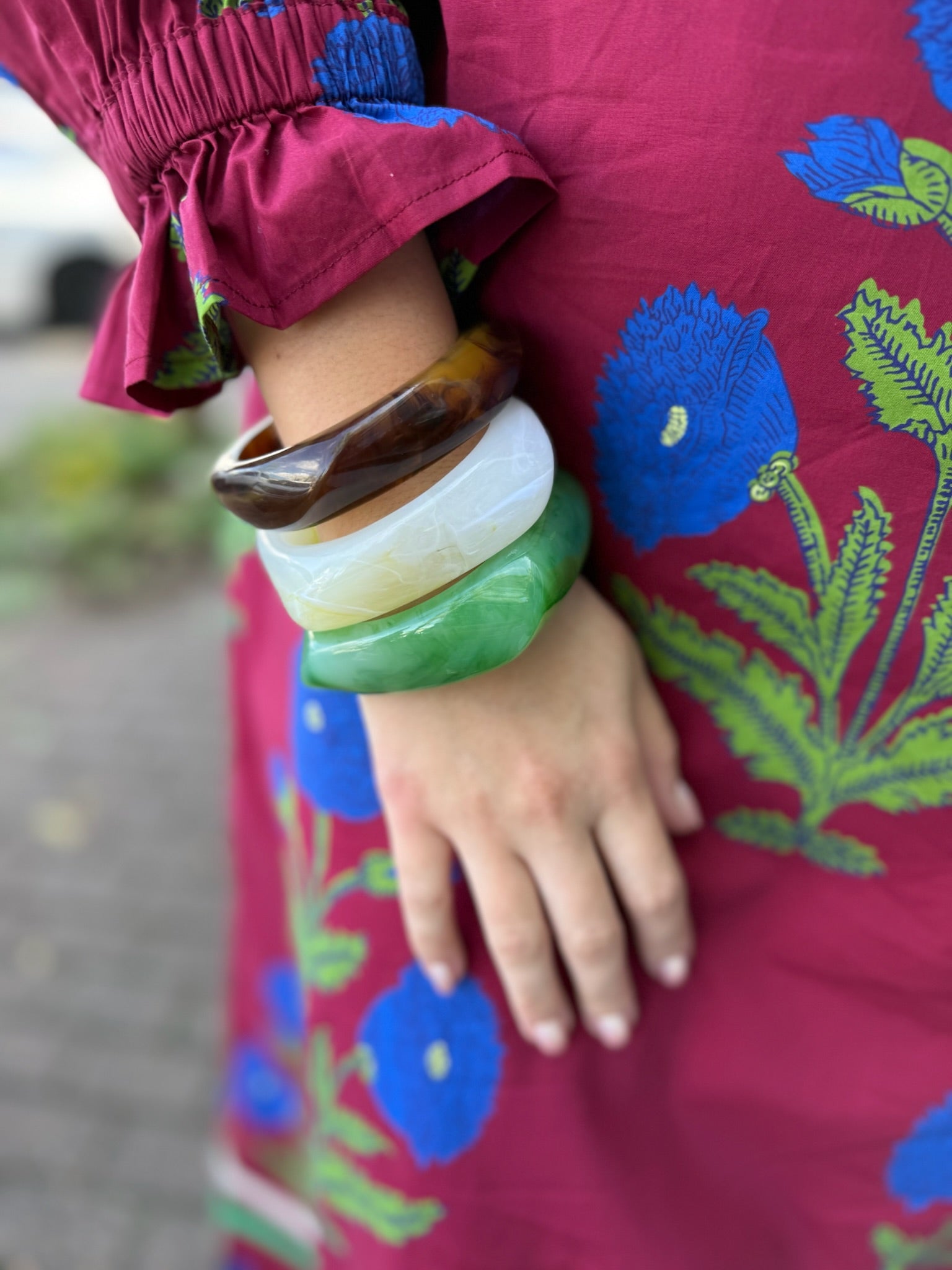 This burgundy midi dress features charming ruffled long sleeves and a delicate high neckline with ruffle detail, creating a sweet and stylish look. Its floral pattern adds a touch of whimsy, while side pockets offer practical convenience. Finished with a solid tape trim hem, this dress blends playful design with comfortable wear for any occasion.