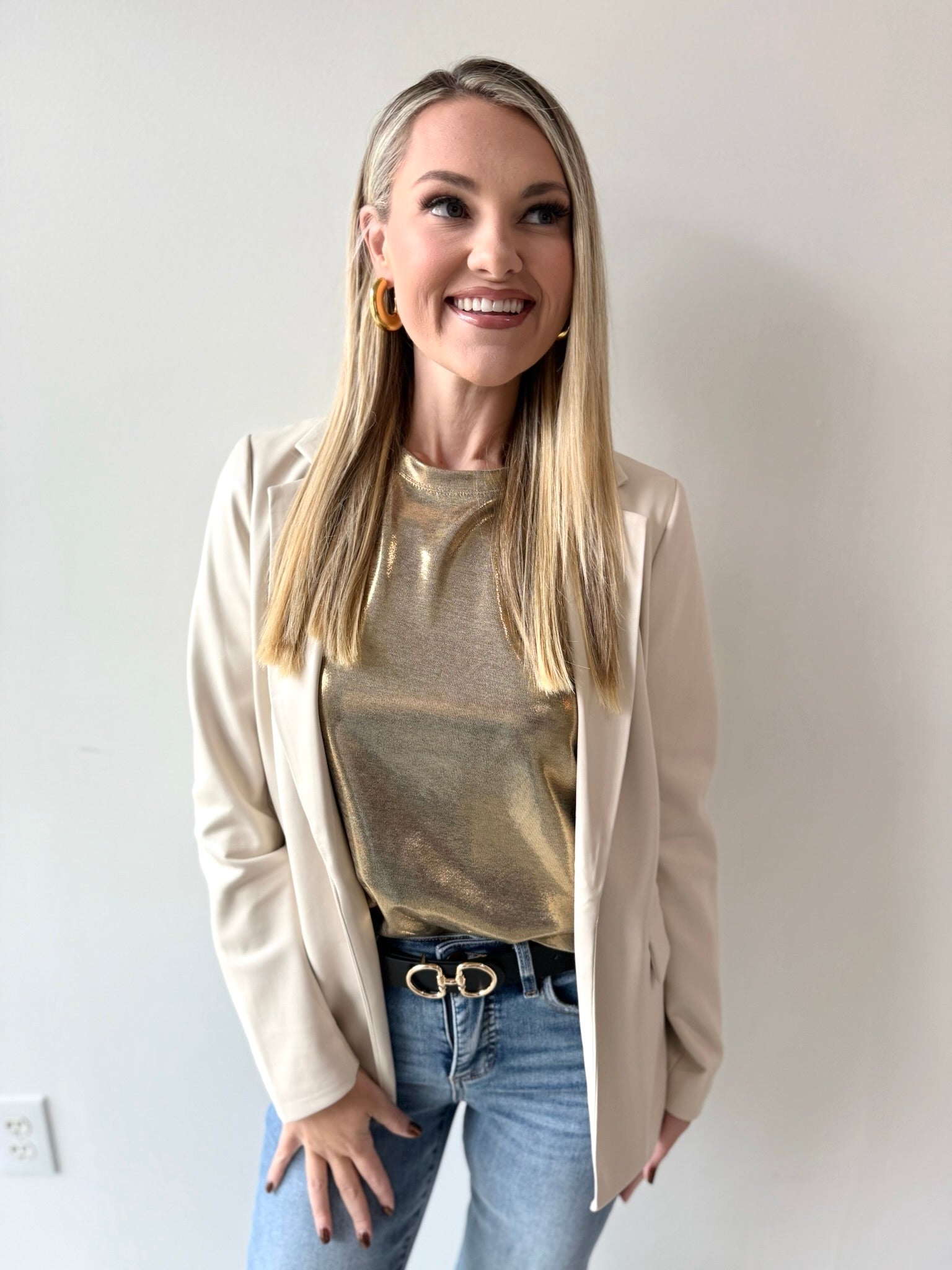 Elevate your wardrobe with the Zelda Lady Luxe Top in stunning gold! This gorgeous piece features a luxe finish that catches the light beautifully, perfect for adding a touch of glamour to any outfit. Whether you're dressing up for a special occasion or want to feel extra fabulous on an everyday adventure, this top delivers effortless elegance. The flattering silhouette and rich gold tone make it a versatile favorite you'll reach for again and again. Shine bright in style!